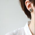 シックなブラックを基調としたクリスタルのビーズ刺繍イヤリングです。