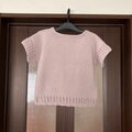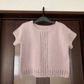 くすみピンクの糸を使用し、裾、袖口、前身頃のセンターに透かし模様を入れて、シンプルに仕上げました。