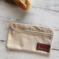#パン #ポーチ #小物入れ #刺繍 #帆布 #かわいい #シンプル #名入れ #父の日 #プレゼント #ペンケース #ファスナー #マチなし #ダブルファスナー #ベージュ #ワッペン #筆箱