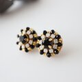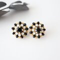 シックなブラックを基調としたクリスタルのビーズ刺繍ピアスです。