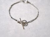 この石を一粒センターに、トライアングルとスクエアのカレンシルバー・ビーズを交互に紡ぎ、シンプルでスタイリッシュなシルバーブレスレットに仕立てました。
