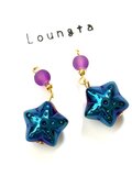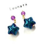 パープルと星のピアス ブルーガラスビーズ 夏ピアス 樹脂ピアス