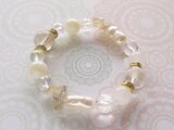 ルチルクォーツ(さざれ)、マザーオブパール10mm、水晶(スターカット)10mm、