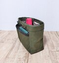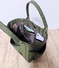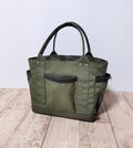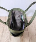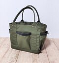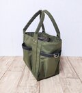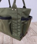 コーデュラナイロン×本革トートバッグ|自立・多ポケット|底鋲/軽量(カーキグリーン)
