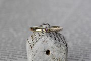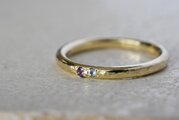 色や質感をだんだんとアンティークのように変化させていく真鍮のリングに変わらぬ輝きを持つ二つの天然石を留めてみました。