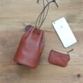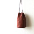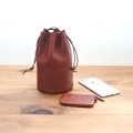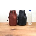 ぷっくりしたフォルムがかわいい、小さな革の巾着バッグです。