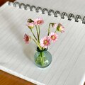 丈夫で柔軟性のある和紙で作ったピンク色のガーベラのミニチュアアートフラワーと花瓶のセット。