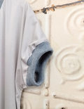 週末セール!ライトグレー上質カットソー裾チェックフリルワンピース