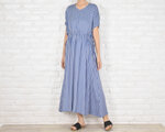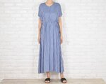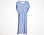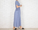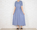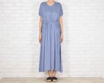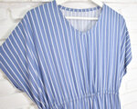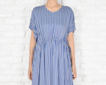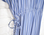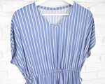 リラックスな着心地 爽やかなストライプ柄Vネックワンピース ブルー