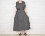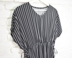 洗練された大人の抜け感。ブラックストライプ柄Vネックワンピース 黒