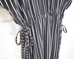 シックなブラック地に、すっきりとした印象のストライプ柄が映える大人のワンピースです。