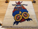 イラン・シラーズ地方の遊牧民(カシュガイ族)が、下絵を元にせず、羊やテント、動物や自然等をモチーフに、自分のインスピレーションで織り描く素朴な手織り絨毯です。基本的に、世界に1枚しかない一枚です。