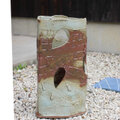 灰釉薬の特徴、濃い部分は白色で薄い部分は赤茶色、土味タップリの雰囲気に焼き上がっています。