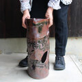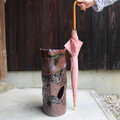 作った傘立てに鉄釉薬を吹き付けて、焼き上げた傘立てです。