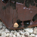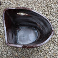 鉄釉薬の特徴、濃い部分は黒色で薄い部分は赤茶色、口部分と本体は動きがあり、手作りの味が出ています・・・