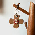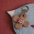 ■イタリアンレザー十字型パーツとフランスのウッドボタンを組み合わせて作りました。
