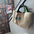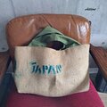 持手も個性的なコーヒー麻袋バッグが出来上がりました。