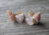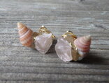 ☆全長:約13~22mm 幅:約19㎜ ローズクウォーツ原石やシェルは左右で大きさが多少異なります