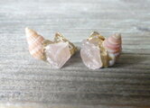 浜辺に打ち上がった貝殻とローズクウォーツのフェミニンなイヤリング