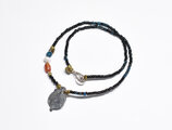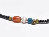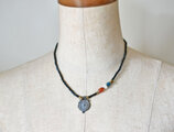 ヴィンテージインドメタルトップと漆黒&多彩ブルービーズ、古代瑪瑙、シャン族カーネリアン、oldオリッサブラスの華奢なネックレス