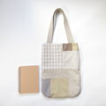 ほんのりまるいぺちゃんこバッグ パッチワーク、ナチュラル