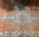 サンセットオレンジ 濃淡 212×110 メダリオン トルコヴィンテージラグ