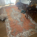 全体にかかる程よいスレ感がキツくなり過ぎず、華やかさとヴィンテージさを兼ね備えた、王道のトルコヴィンテージラグ