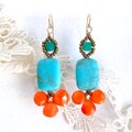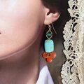 さわやかなターコイズブルーとオレンジ色が鮮やかな天然石のピアス