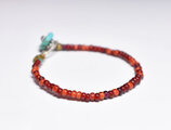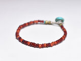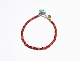 アンティーク血赤&金赤ホワイトハーツと一粒ターコイズブルーシェブロンのブレス(ターコイズ留め金)