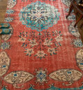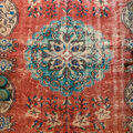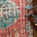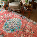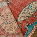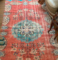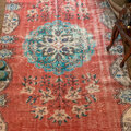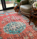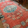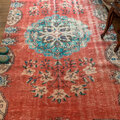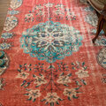 ヴィンテージラグにしか出せない、経年変化による程よいスレ感がこのお色味によくマッチしていて、レトロ感がなんとも素敵なトルコラグです