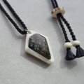 北海道産の鹿角から削り出した土台に、アンモライトを埋め込んだペンダントです。