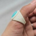リングの中心に据えた石、アマゾナイトの和名は「天河石(てんがせき)」