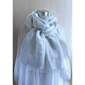 上質ベルギーリネンのストール ストライプ ベビーブルー