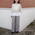 [予約販売] ヨーロッパグレージュリネン・ラインきれいなワイドパンツ(セットアップ可)