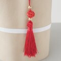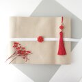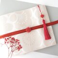 色紙に樹脂を染み込ませた落ち着いた赤色です。柄物の帯上でもしっかりと目を惹き、大人女性らしさを印象付けてくれます。タッセルはやや艶があり高級感があります。