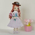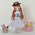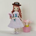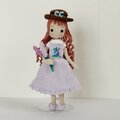 ボトムは、サロペットデザインのラベンダースカート。胸にはラベンダーの刺繡をつけいます。