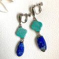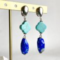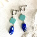 大粒ラピスラズリとマグネサイトターコイズのイヤリング