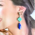さわやかなターコイズブルーと濃く鮮やかなラピスラズリがお顔まわりを華やかに見せてくれる大人のイヤリングです