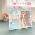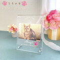 アクリルのフォトフレームに「名前(ローマ字)・誕生日・没年月日・フリーメッセージ」を