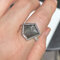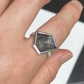 ルチルクォーツ × スぺクトロライト ダブレット 変形5角形立体ラフカット シルバーSV925リング