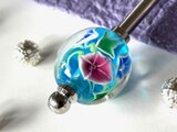 水色と赤紫の朝顔のとんぼ玉でかんざしを作りました。
