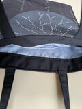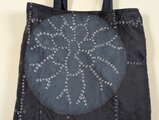 黒色のプリントの生地を使った、シンプルなぺたんこバッグです。