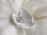 そして、お揃いの翼のデザインでセットになったのが、こちらのペンダントネックレス。薄く洗練されたフォルムが清浄感と癒しを与えてくれる、翼のデザインのペンダント。