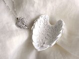 手のひらサイズの翼の小物入れと薄くて軽い翼デザインのペンダントネックレスを組み合わせた、翼のコフレセット。