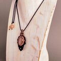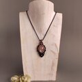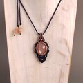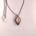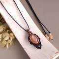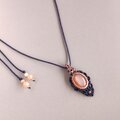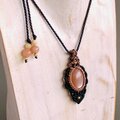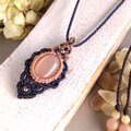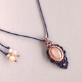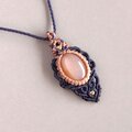 ちょっぴりくすんだオレンジ色のピーチムーンストーンを、明るいベージュのワックスコードで包んで、ネイビーのコードで装飾をつけてマクラメ編みのネックレスを作りました。