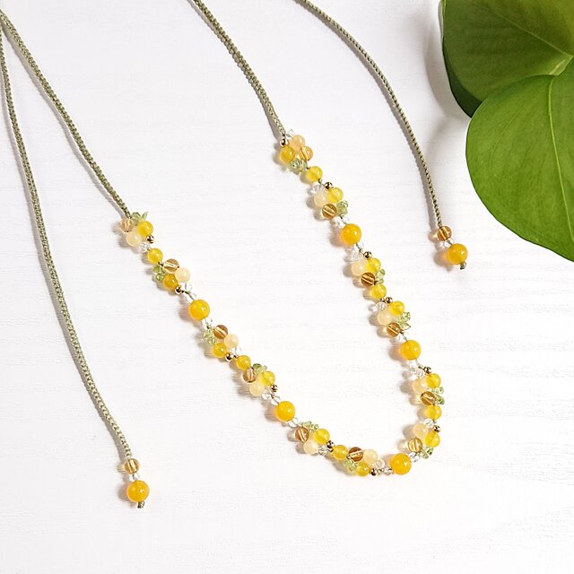 ミモザカラーの天然石 フリーサイズネックレス Y-2055