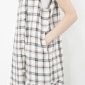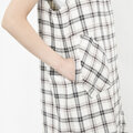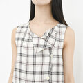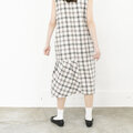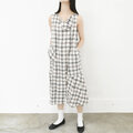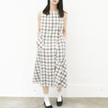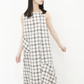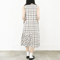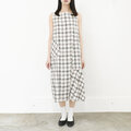 【完全一点物】アシンメトリーノースリーブワンピース(クリームチェック)