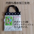 雨の日用に、撥水加工の生地で製作した、小さめサイズのレインバッグです。