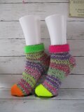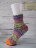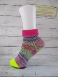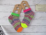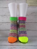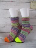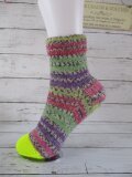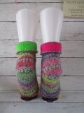ドイツのブランド Schachenmayr Regia Day Dreaming Color & Opal Uni Neon ピンク・イエロー・オレンジ・グリーンで編んだ靴下です。