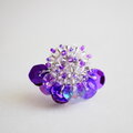 今回はシルバーベースで鮮やかなパープルの濃淡をランダムに散りばめて編んだ丸とそれに合わせた色のスパンコールを合わせました。